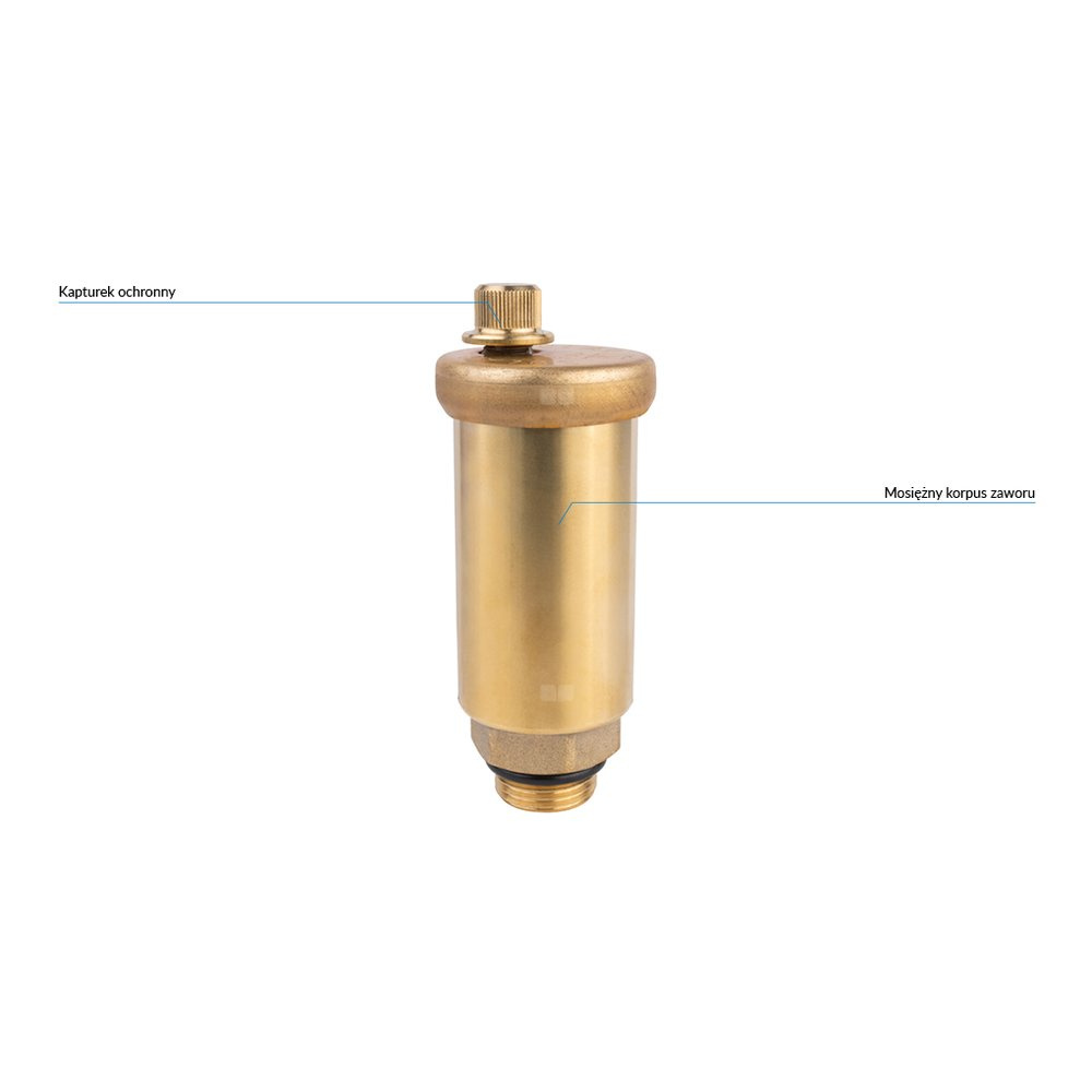 Usuwa powietrze podczas napełniania i konserwacji instalacji. W trakcie normalnej pracy instalacji musi być odcięty