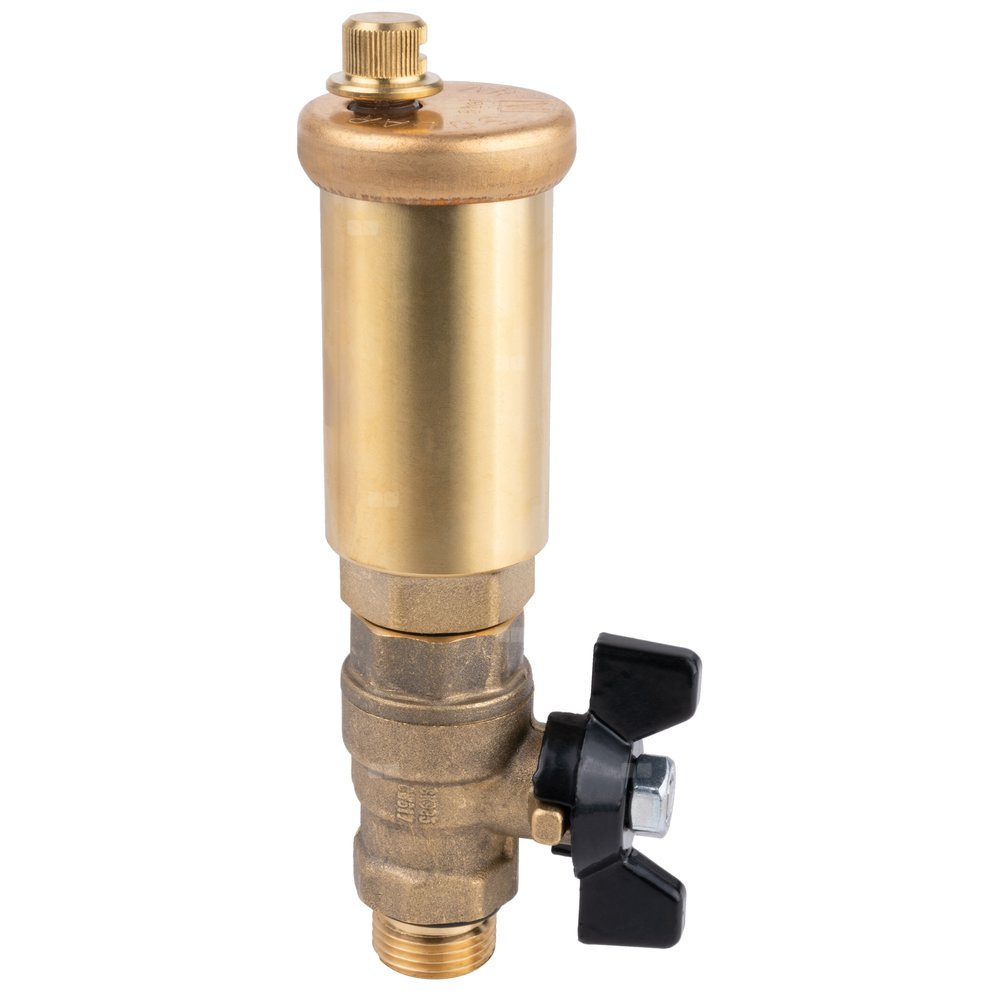 Kulowy zawór odcinający umożliwia łatwe odcinanie odpowietrznika od instalacji.