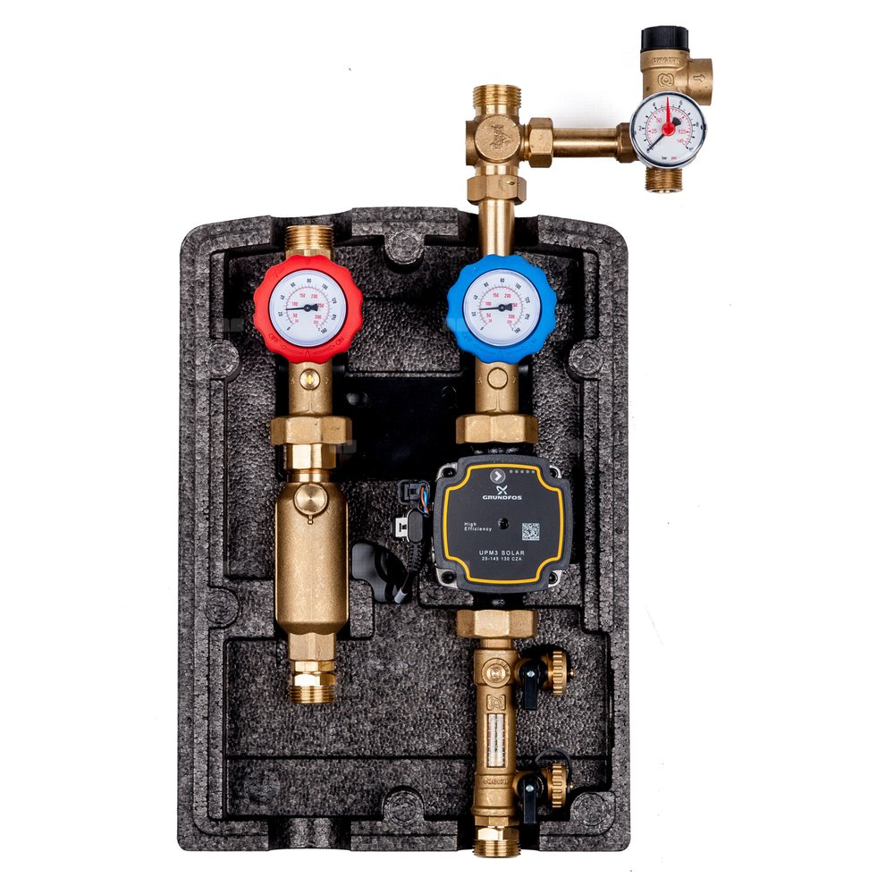 Solarna dwudrogowa grupa pompowa Viteco 2D/8-28L (z pompą elektroniczną Grundfos UPM3 Solar 25-145, z rotametrem 8-28 l/min)