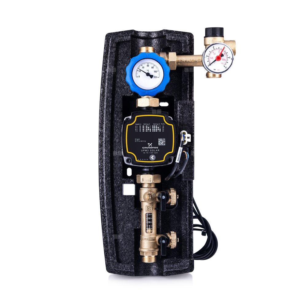 Solarna jednodrogowa grupa pompowa Viteco 1D/2-14L (z pompą elektroniczną Grundfos UPM3 Solar 15-75, z rotametrem 2-14 l/min)