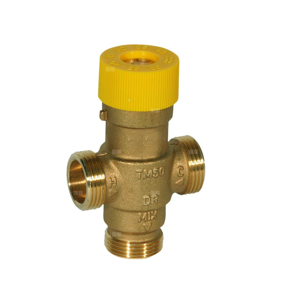 Termostatyczne zawory mieszające tego typu są stosowane do centralnej regulacji zasilania ciepłej wody użytkowej w systemach solarnych, w układach z dwoma źródłami energii. Bardzo czuły element termiczny umieszczony na wyjściu zaworu steruje trzpieniem regulującym proporcje przepływu gorącej i zimnej wody, tak by wymieszana woda miała temperaturę ustawioną za pomocą pokrętła nastawczego. Na wejściach zimnej i gorącej wody zastosowano "miękkie uszczelnienia" umożliwiające: