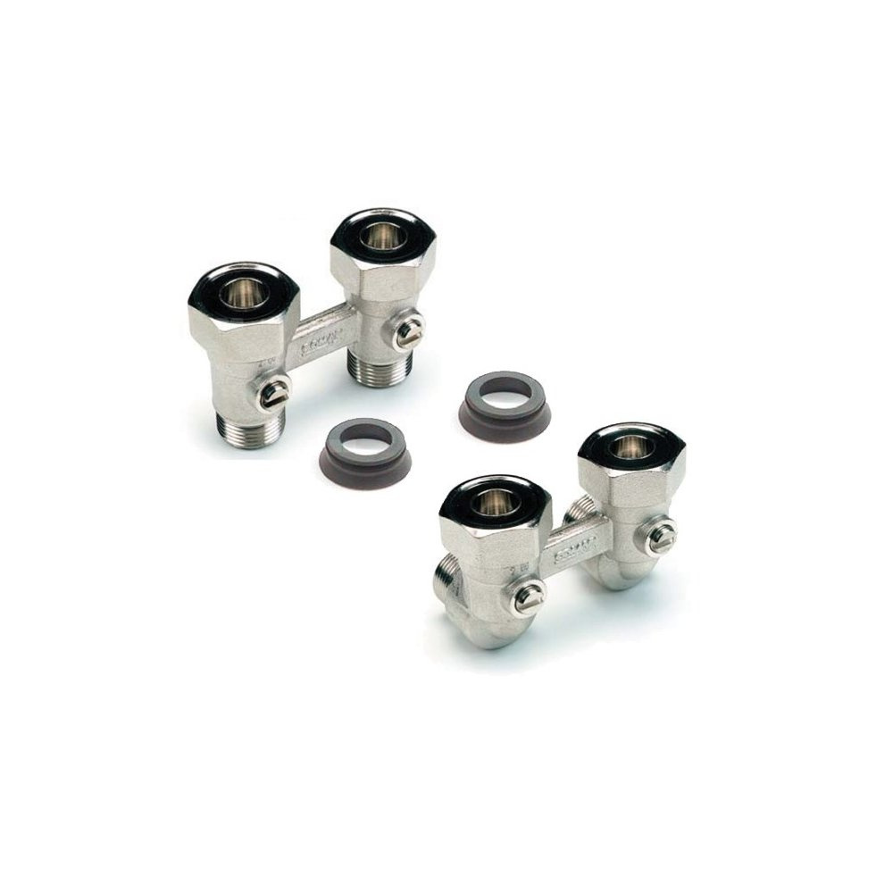 Zestawy przyłączeniowe wykonane z najwyższej jakości mosiądzu, niklowane, stosowane w instalacjach c.o. w układach zamkniętych. Wyposażone we wkładki. Odcięcie, regulacja przepływu. Maks. temp. czynnika grzewczego 120°C, maks. ciśnienie statyczne 10 bar, maks. przepływ 1,8 m³/h.