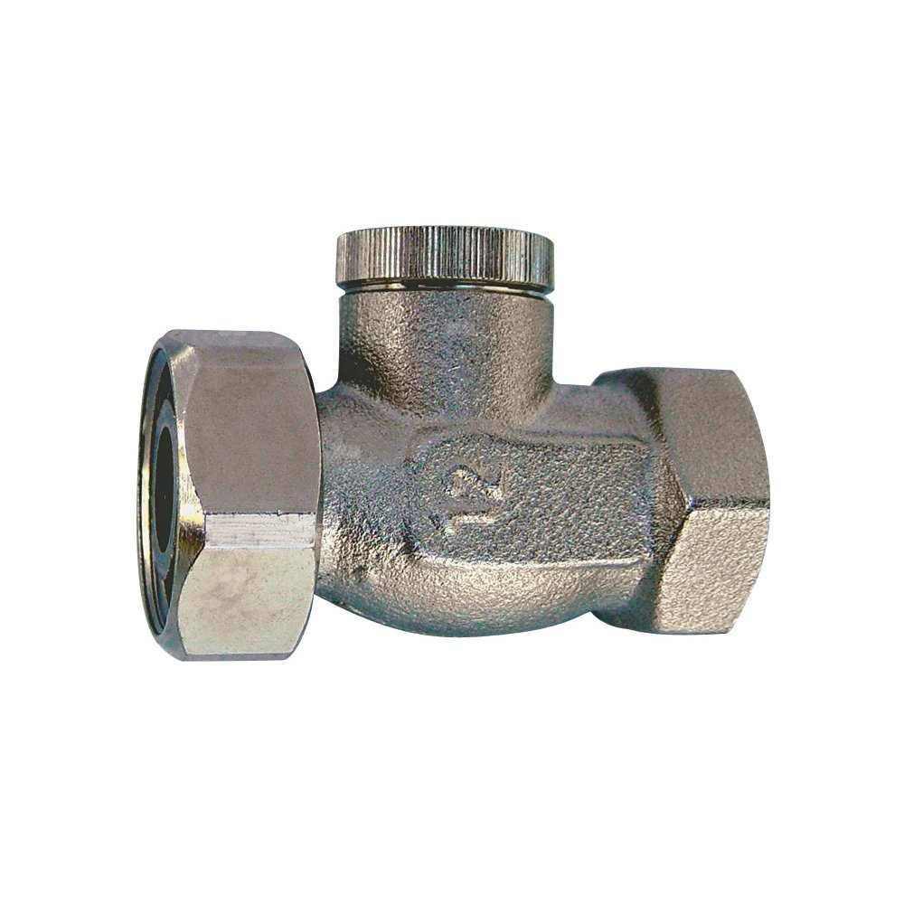 HERZ-RL-1 - indywidualny zawór odcinający, figura prosta, do instalacji dwururowych Przyłącze grzejnikowe G 3/4 ze stożkiem, swobodna nakrętka. Model uniwersalny ze specjalną mufą Rp 1/2 do rur gwintowanych i przyłączy zaciskowych.