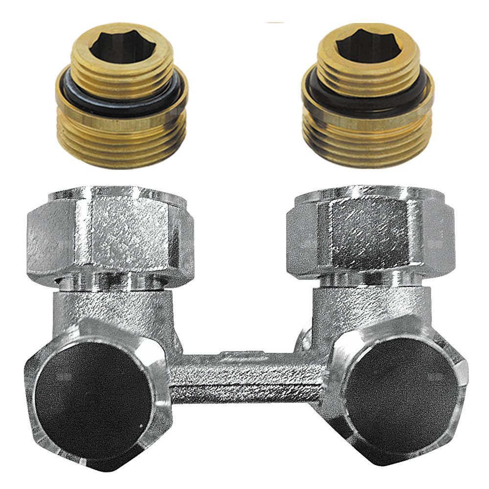 Moduł przyłączeniowy kątowy HERZ 3000 (3466) mosiądz (niklowanie) 1/2'' x 3/4'', rozstaw 50 mm do grzejników