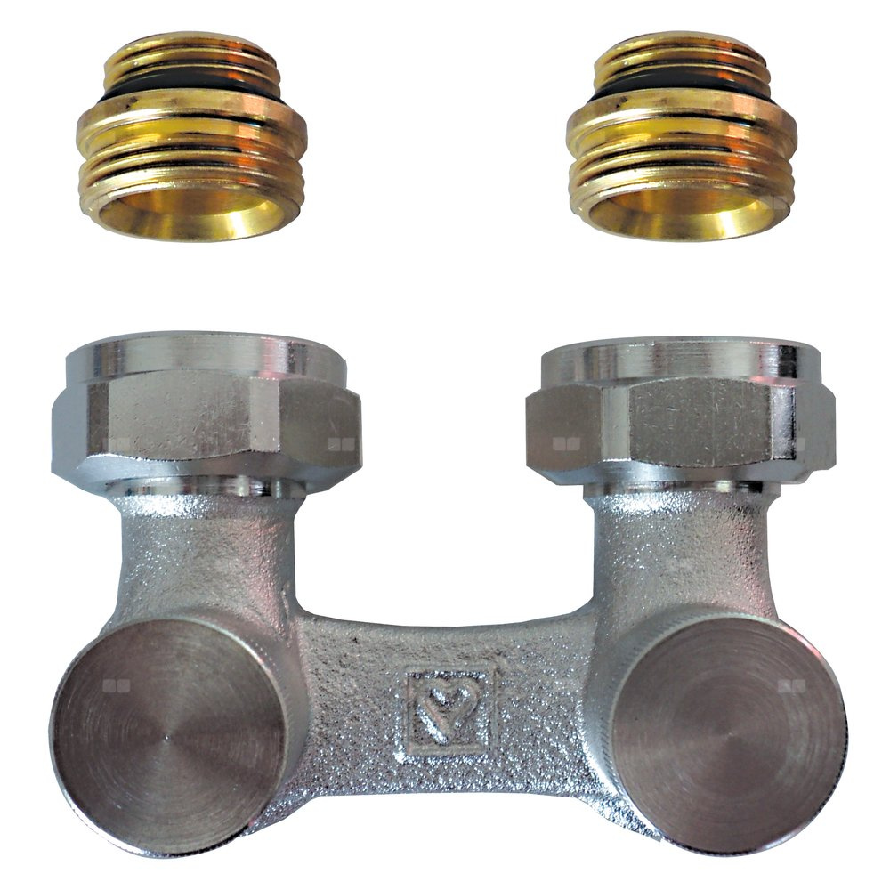 Moduł przyłączeniowy kątowy HERZ 3000 (3766) nyple mosiądz (niklowanie) 1/2'' x 3/4'', rozstaw 50 mm do grzejników