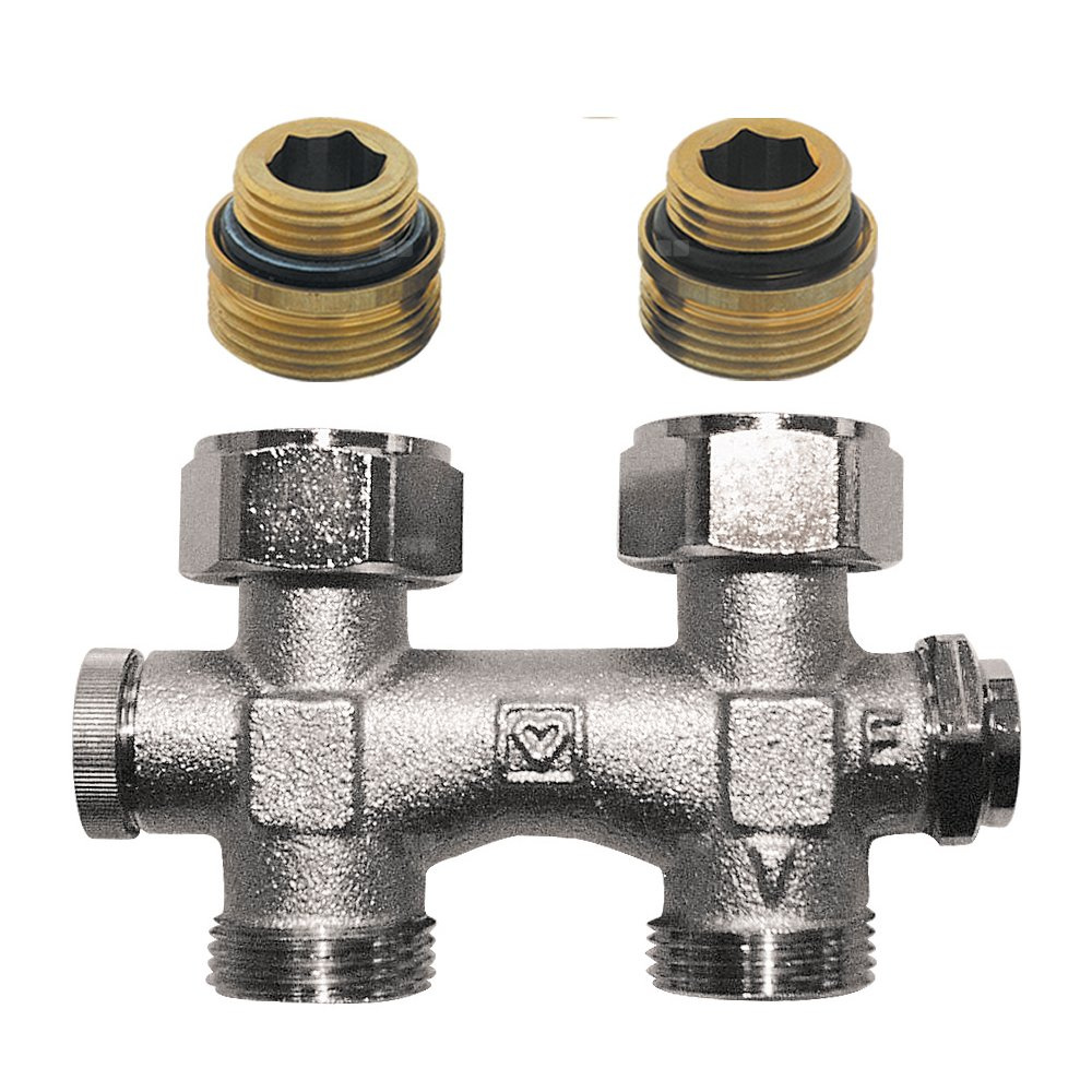 Moduł przyłączeniowy prosty HERZ 3000 (3066) nyple mosiądz (niklowanie) 1/2'' x 3/4'', rozstaw 50 mm do grzejników