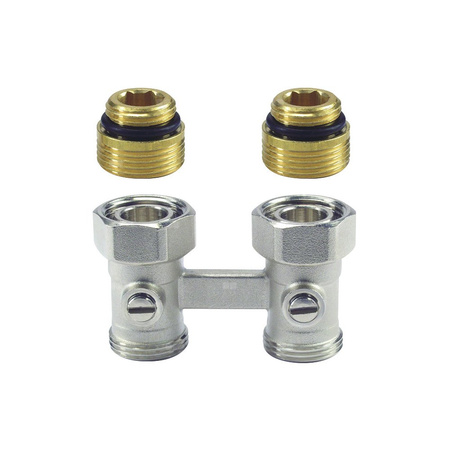 Moduł przyłączeniowy prosty HONEYWELL V2495 mosiądz (chromowanie) 1/2'' x 3/4'', rozstaw 50 mm do grzejników