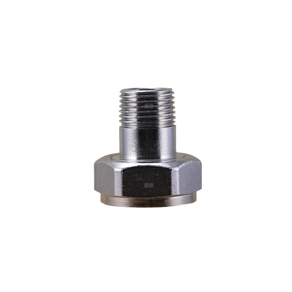 Przyłącze grzejnikowe z mosiądzu, niklowane, do zaworów 3/4, przyłącze grzejnikowe 1/2, nakrętka i łącznik, z uszczelnieniem stożkowym.