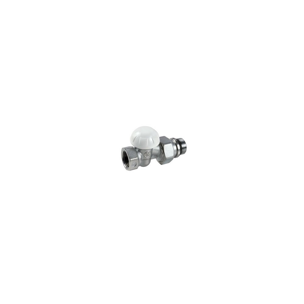Zawór powrotny prosty regulacyjno-odcinający, przyłącza gwintowane, zaślepka z tworzywa, chromowany z samouszczelniającym gwintowanym zakończeniem TG.