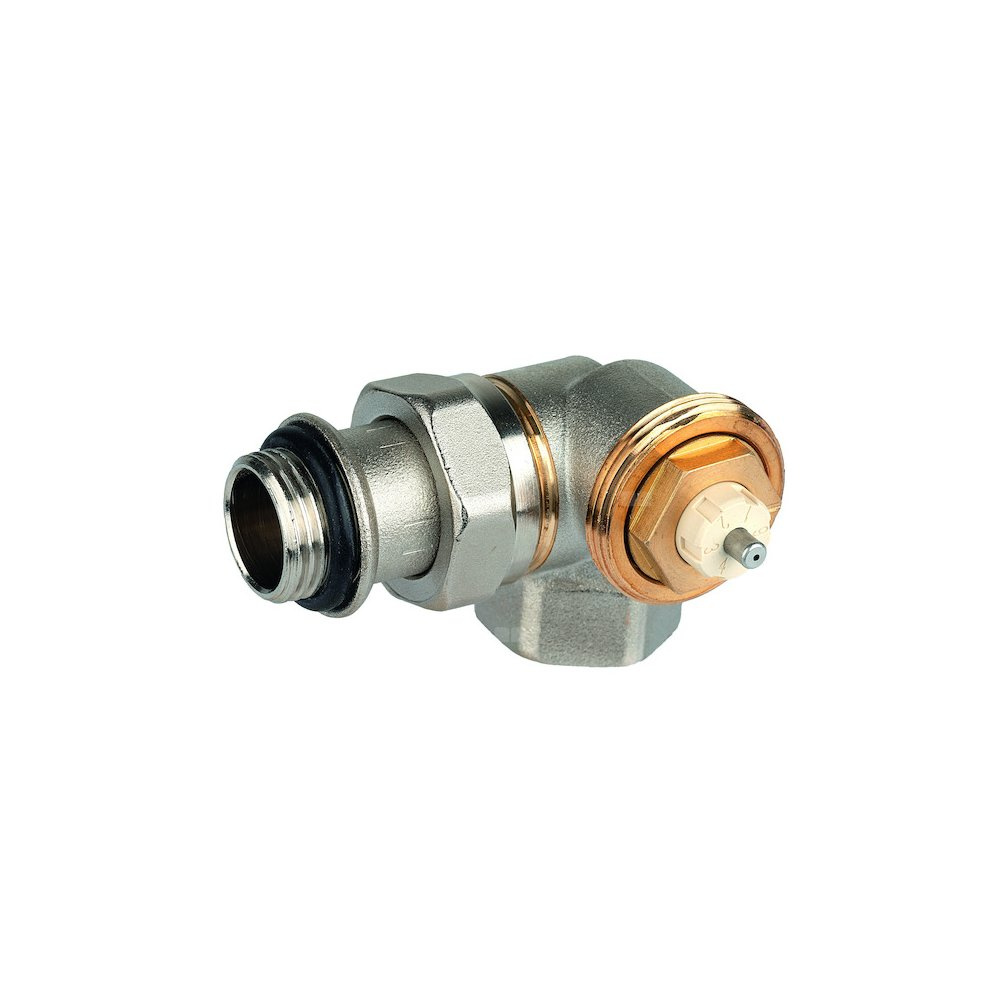 Zawór termostatyczny, narożny prawy, wkładka SX, 1/2", gwint wewnętrzny, ze złączką do grzejnika z uszczelnieniem miękkim