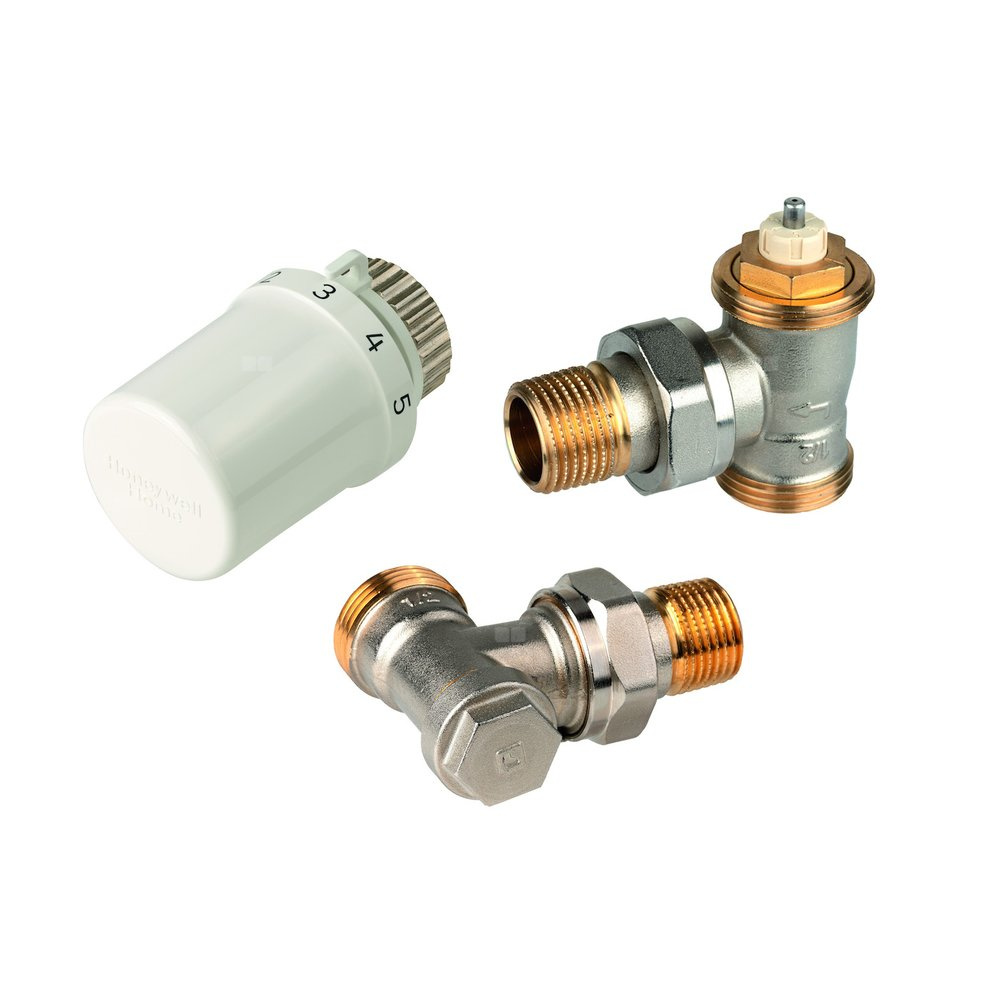 Zestaw do grzejników bocznozasilanych: głowica Thera-6 T3019 + zawór termostatyczny kątowy V2026ESX15 (GZ/GZ) + zawór powrotny, kątowy, 1/2" V2427E0015