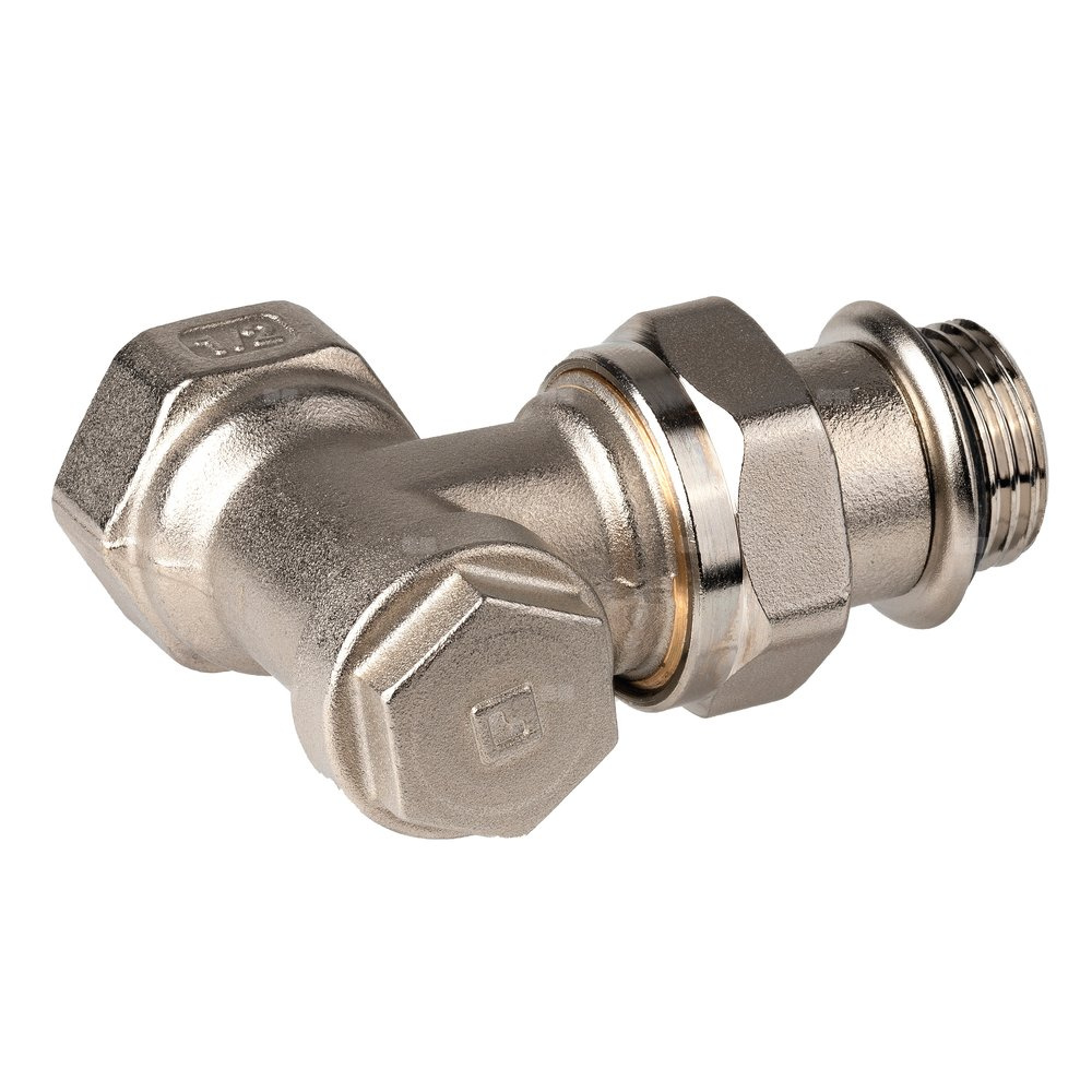 2. Zawór termostatyczny z wkładką SX, kątowy, przyłącze 1/2". Korpusy z gwintami wewnętrznymi i złączką do grzejnika z uszczelnieniem miękkim