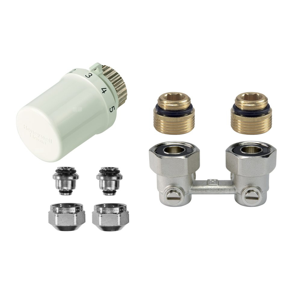 Zestaw do grzejników dolnozasilanych: głowica Thera-6 T3019W0 + zawór Verafix VK, kątowy, 1/2" V2496EY015A + złączka do rur wielowarstwowych OT113M-3/4F