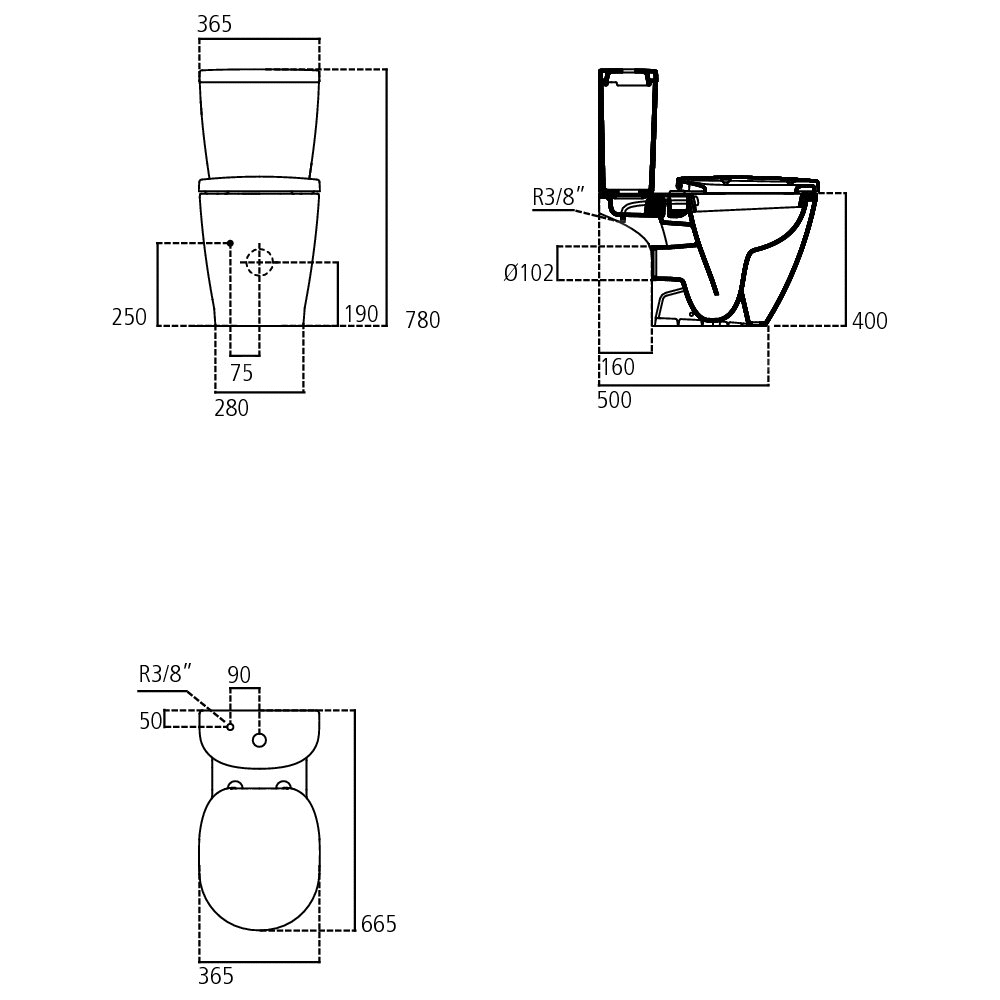 Blisko połączona otwarta miska, washdown w białym błyszczącym wykończeniu - CONNECT