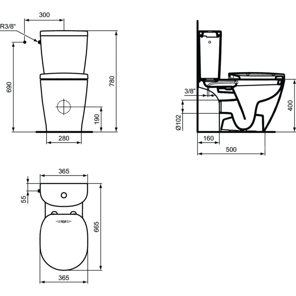 Blisko połączona otwarta miska, washdown w białym błyszczącym wykończeniu - CONNECT