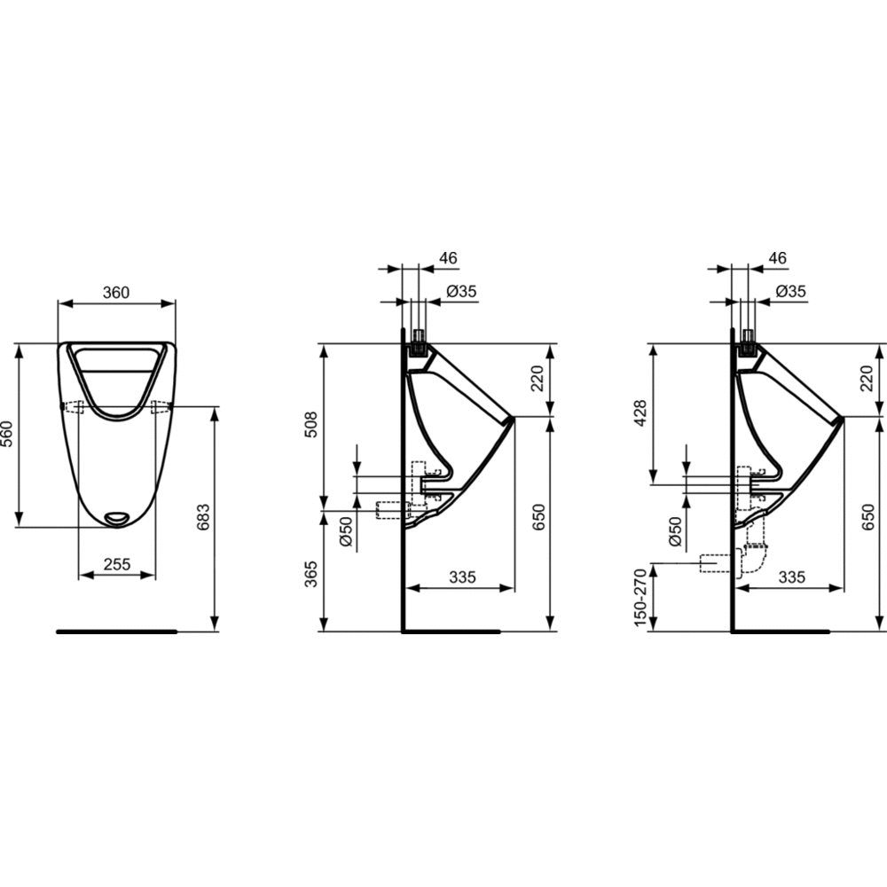 Pisuar 360x335x560 mm, bez korka spustowego - EUROVIT
