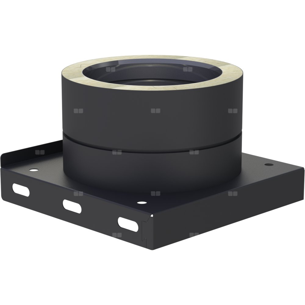 Płyta fundamentowa systemu izolowanego Jeremias DW-BLACK lakierowana na czarno, jest elementem bazowym instalacji kominowej, na którym montowane są kolejne elementy pionowej części układu kominowego. Do ściany budynku element ten jest montowany za pośrednictwem wsporników komina.brak