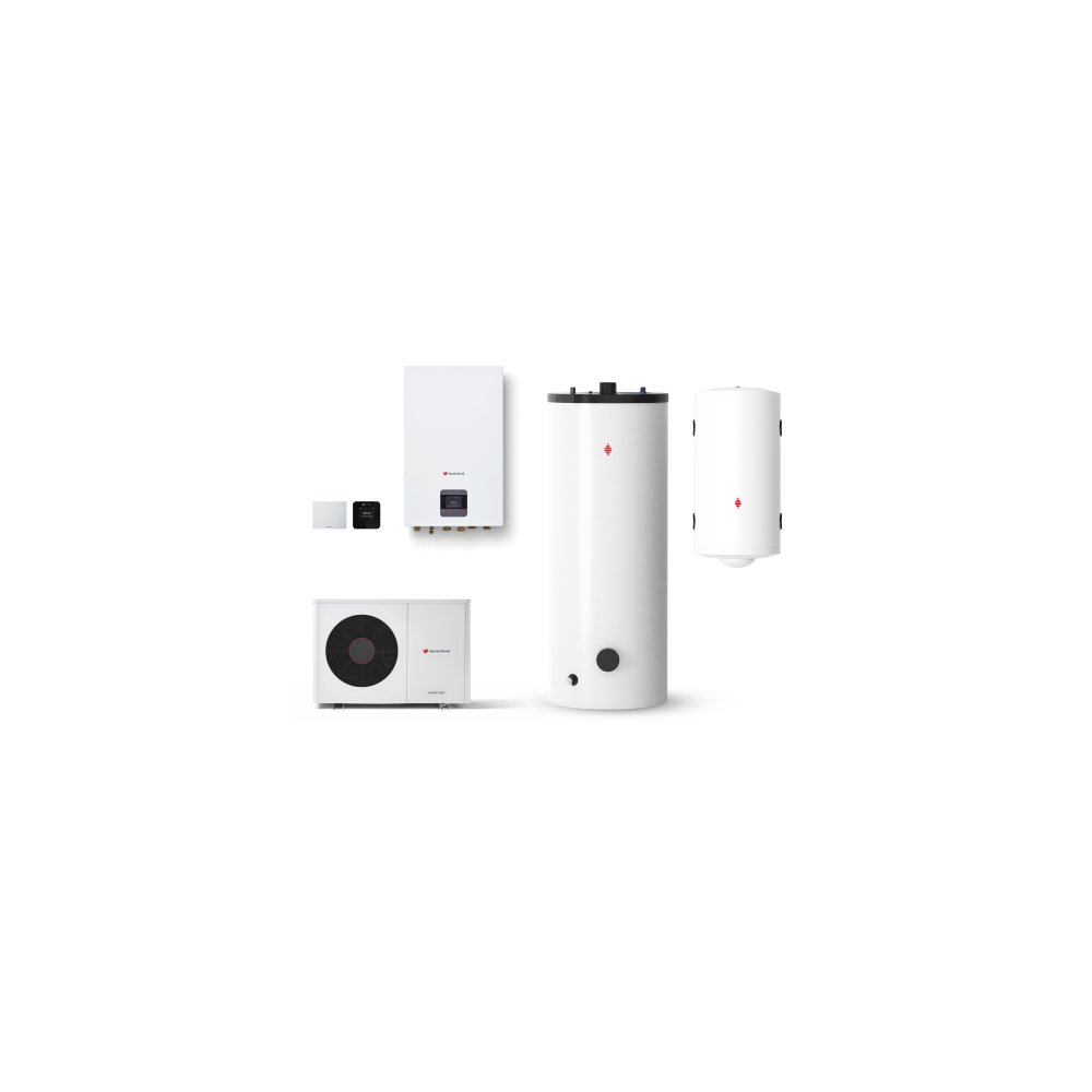 Pompa ciepła powietrze/woda typu split HA 5-8.2 OS 230V, moduł ścienny HA 5-8.2 WSB, regulator MiPro sense SRC 720, zintegrowany moduł internetowy SR 940, zasobnik cwu FEW 250, czujnik cwu w dostawie z modułem ściennym, bufor co WN RW 50.