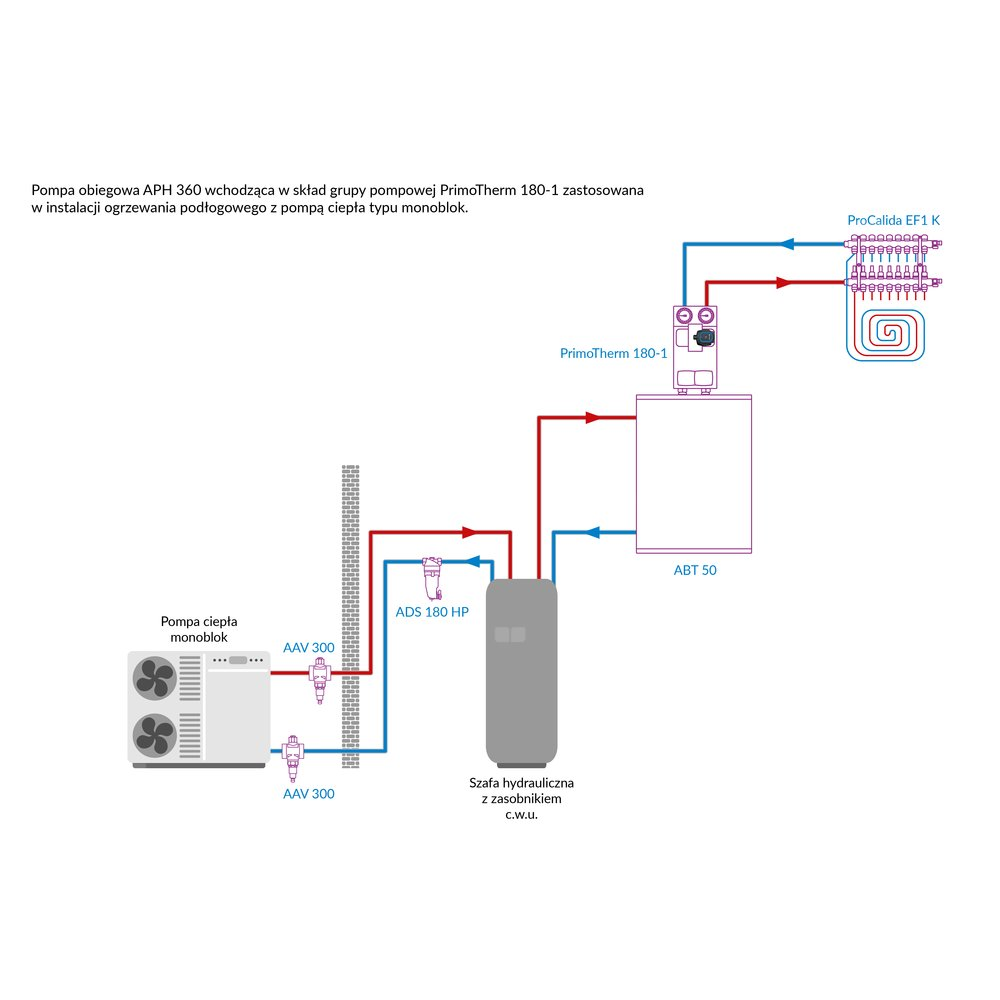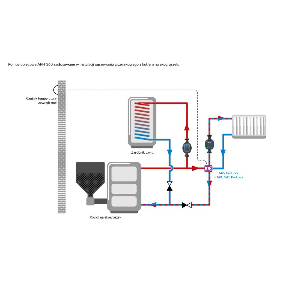Przetłacza czynnik grzewczy ze źródła do emiterów ciepła.