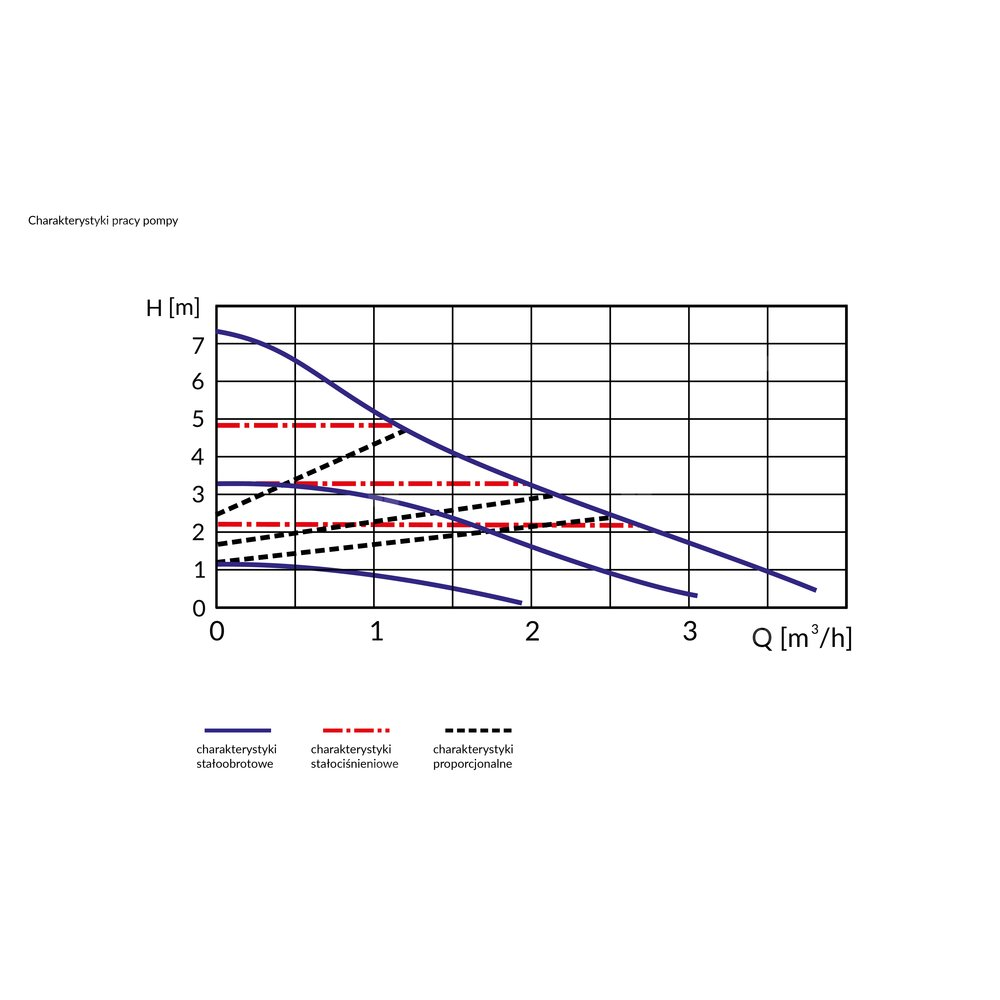 Zaprogramowana w 9 charakterystyk (3 stałoobrotowe, 3 proporcjonalne, 3 stałociśnieniowe).
