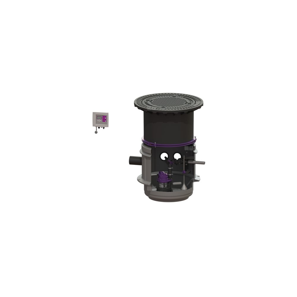 Przepompownia do ścieków bez fekaliów jest wyposażona w jedną lub dwie pompę zanurzeniową oraz zawór zwrotny. Za zbiornik służy system studzienki LW 600 z trwałego tworzywa sztucznego (PE-LLD) z otwartą komorą pompy z uniwersalnymi możliwościami podłączenia. Zamknięcia szybkomocujące umożliwiają łatwe wyjęcie zintegrowanych komponentów.