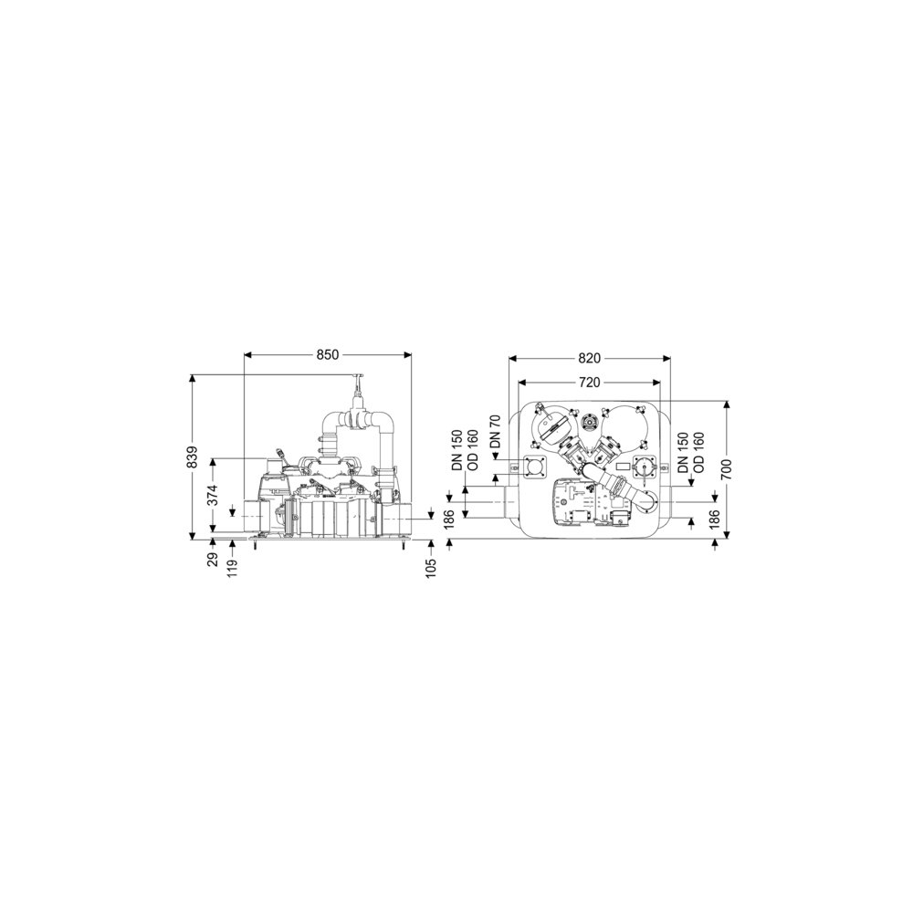 Z zaworem zwrotnym i zasuwą odcinającą do przewodu tłocznego. Z uszczelkami przelotowymi DN 70 do przewodu wentylacyjnego w miejscu instalacji. System zamykania przewodu kanalizacyjnego z tworzywa sztucznego do bezpiecznego zamknięcia przewodu kanalizacyjnego podczas przepływu zwrotnego. W skład wchodzą: klapa wahadłowa z zamknięciem awaryjnym (aby w razie potrzeby możliwe było jej ręczne zablokowanie) i elektromotorycznym mechanizmem zamykającym z sodą z odpornym na zerwanie kablem do rozpoznawania przepływu zwrotnego. Urządzenia sterujące ze zintegrowanym systemem samodiagnozy (SDS), wyświetlaczem do wskazywania stanów roboczych i zintegrowanym buforem bateryjnym do sygnalizacji alarmu. Przyjazne dla użytkownika prowadzenie po menu na wielowierszowym wyświetlaczu. Z systemem samodiagnozy (SDS) i funkcją przypominania o następnej konserwacji. Wskazanie aktualnych wartości pomiarowych. Łatwe dopasowanie parametrów związanych z funkcjami, z licznikiem roboczogodzin i kontaktem bezpotencjałowym. Optymalne przekazywanie komunikatów alarmowych i zbiorczych poprzez modem GSM. Sterownik z wyświetlaczem tekstowym z pełnym zakresem znaków w sześciu językach.