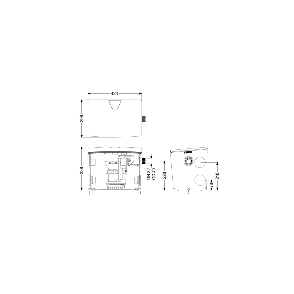 • Dopływ pionowo (DN): 40