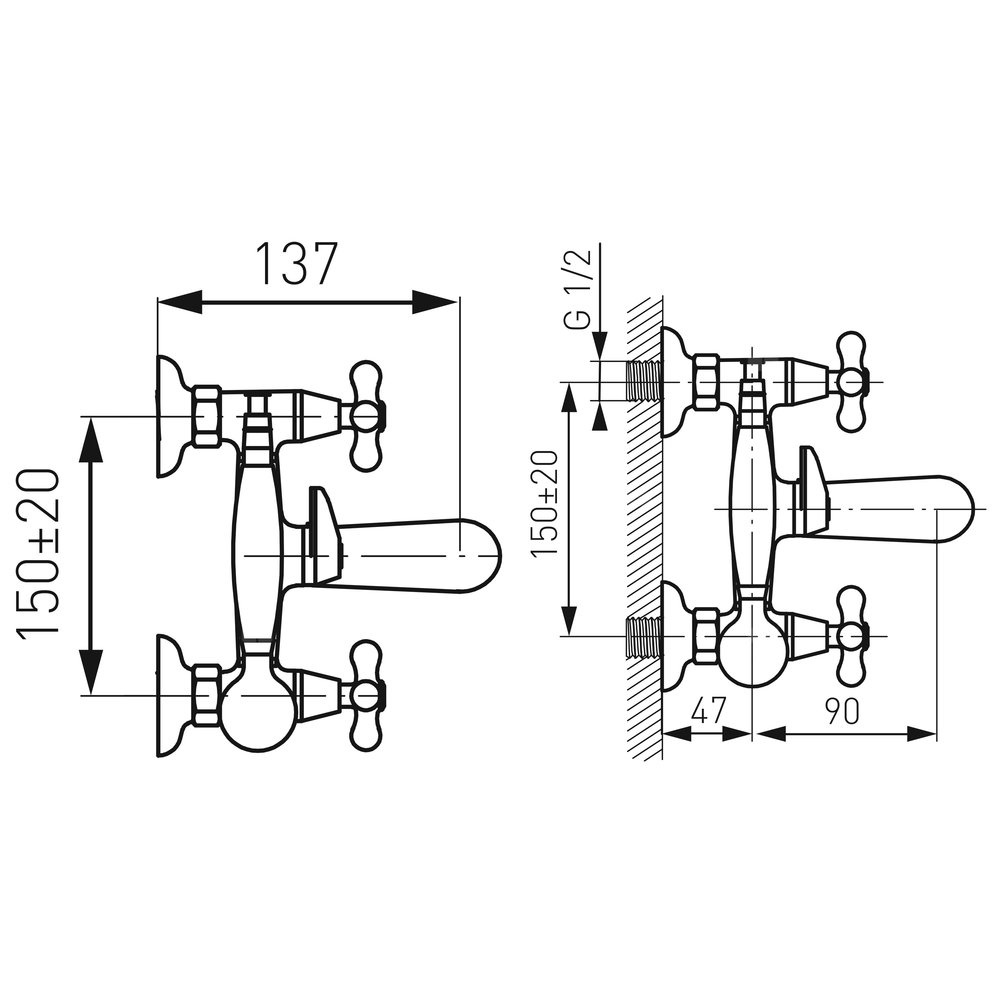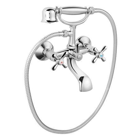 Bateria wannowa w unikalnym dizajnie retro, idealnie pasująca do łazienek w stylu vintage. W komplecie znajdziemy pasującą stylistycznie rączkę w stylu retro oraz trwały wąż prysznicowy.