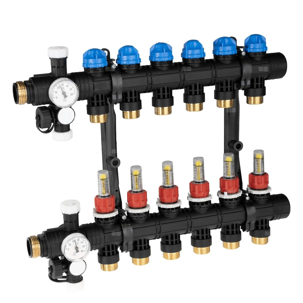 Rozdzielacz do ogrzewania podłogowego AFRISO ProCalida EF1 6-obieg. poliamid GZ 1'' x euroconus 3/4''