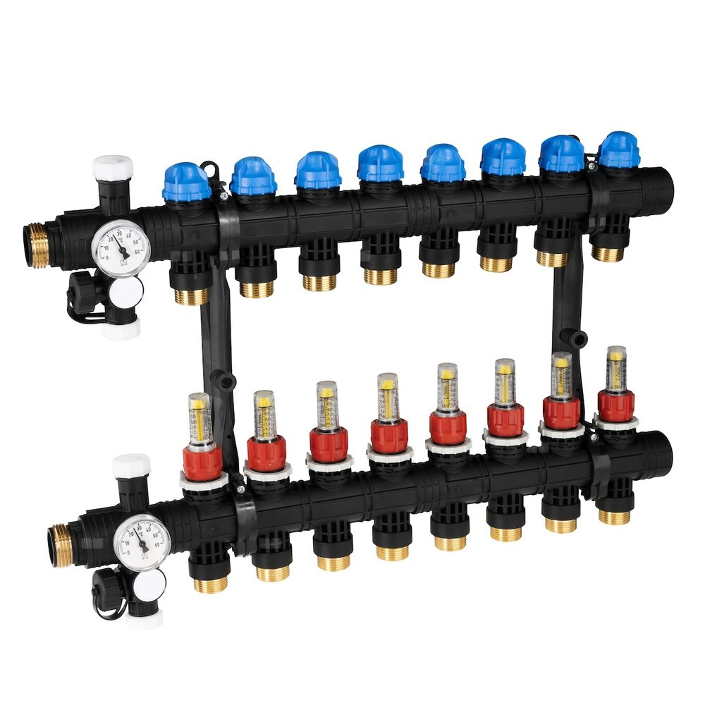 - Rozprowadza ciepło/chłód ze źródła na poszczególne pętle instalacji płaszczyznowej.