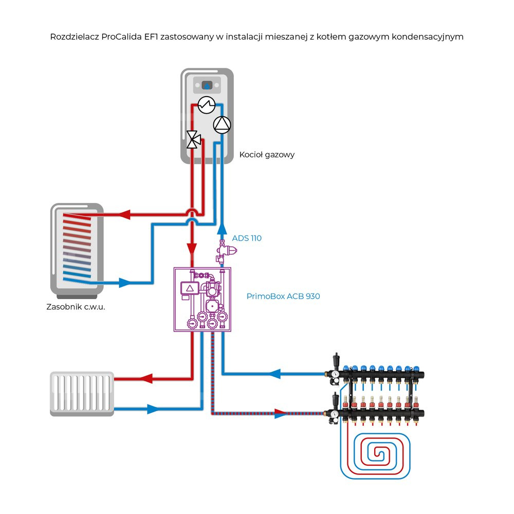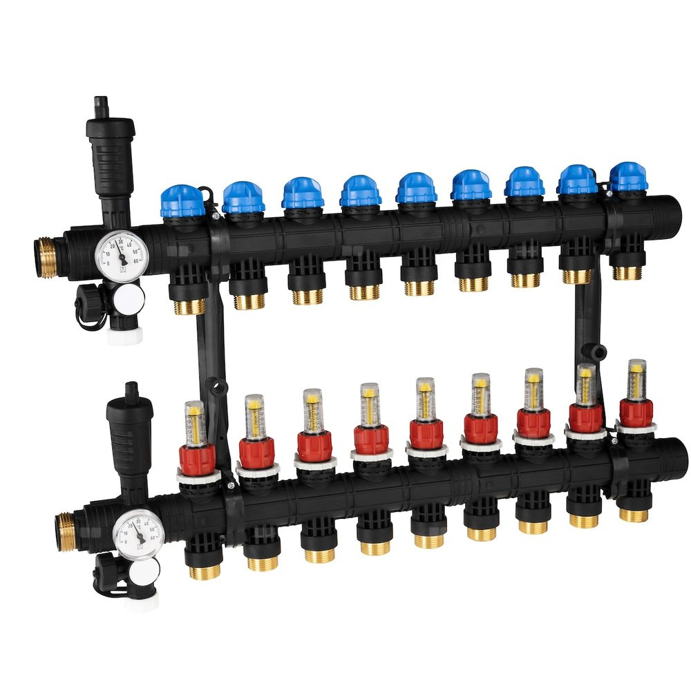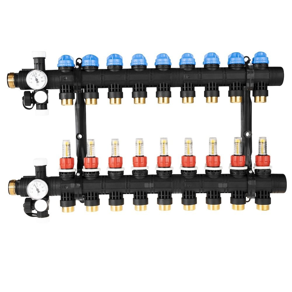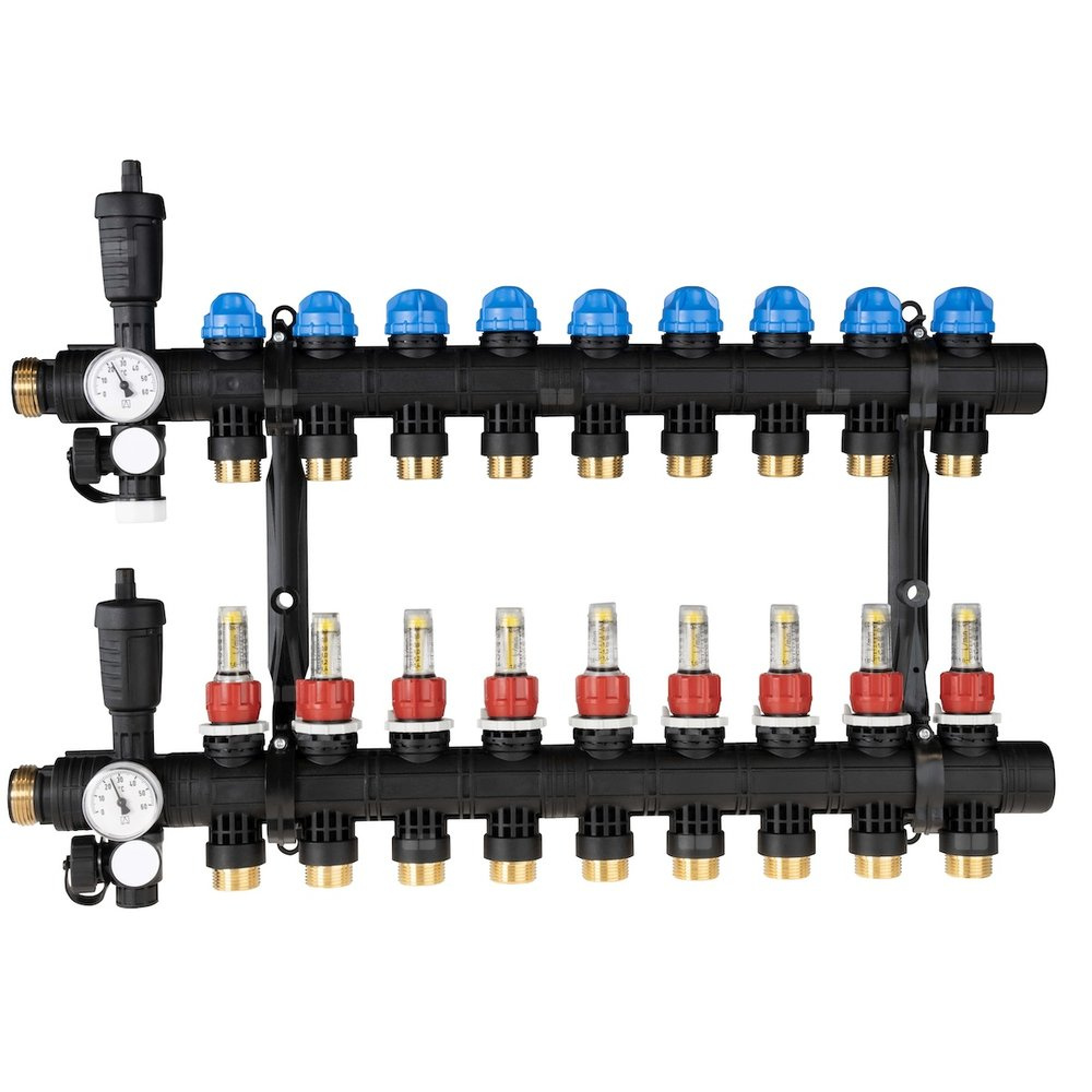- Rozprowadza ciepło/chłód ze źródła na poszczególne pętle instalacji płaszczyznowej.