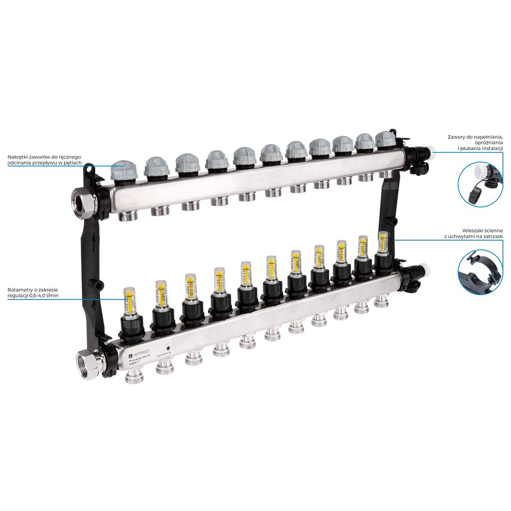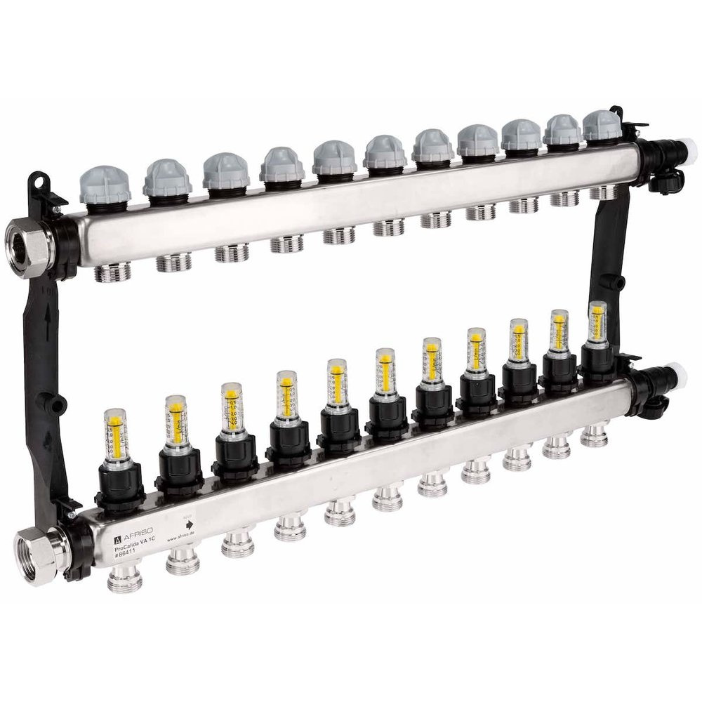 Rozdzielacz do ogrzewania podłogowego AFRISO ProCalida VA 1C 11-obieg. stal nierdzewna GZ 1'' x euroconus 3/4''