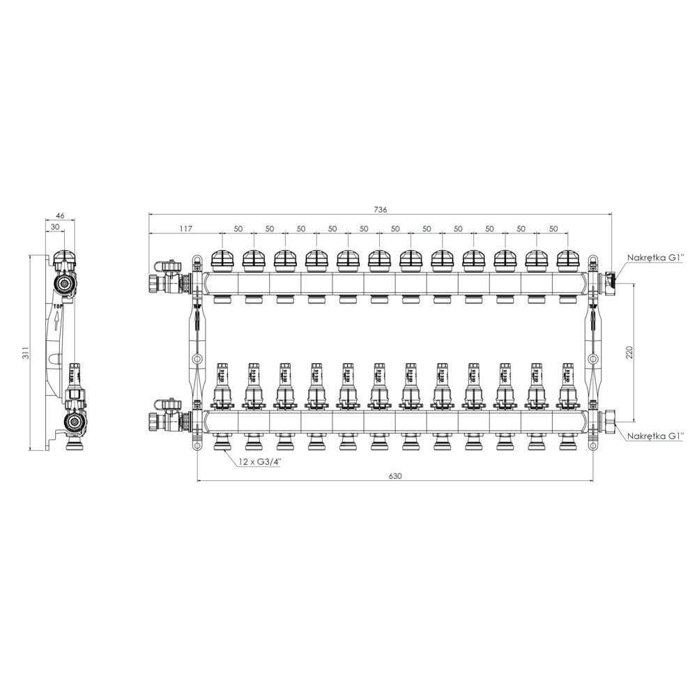 - Rozprowadza ciepło / chłód ze źródła na poszczególne pętle instalacji płaszczyznowej.
