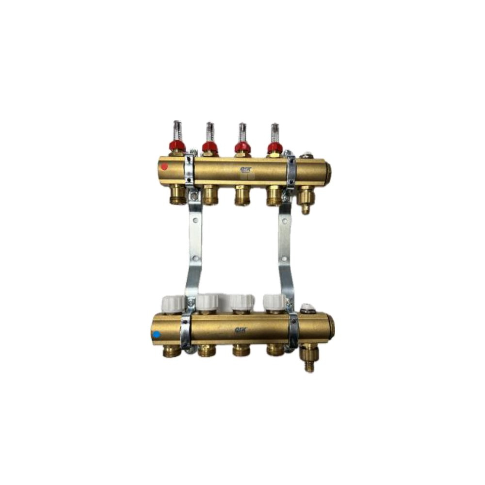 Rozdzielacz do ogrzewania podłogowego QIK MAGNET 2-obieg. mosiądz GW 1'' x GZ 3/4'' + przepływomierz