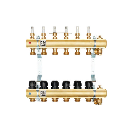Rozdzielacz do ogrzewania podłogowego QIK MAGNET PREMUIM IV 14-obieg. mosiądz GW 1'' x GZ 3/4'' + przepływomierz