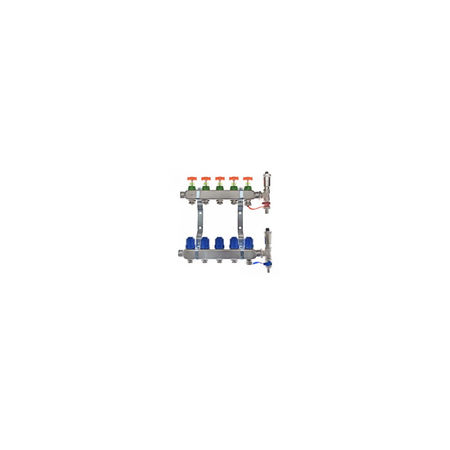 Rozdzielacz do ogrzewania podłogowego QIK Optimo STANDARD III PC - RNZT-1-50 2,5l 2-obieg. inox GW 1'' x GZ 3/4'' + przepływomierz