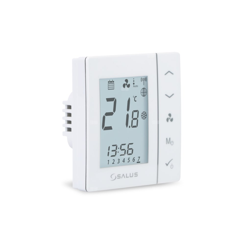 - Steruje ogrzewaniem/chłodzeniem.- Może sterować przewodowo: klimakonwektorami 2 lub 4-rurowymi, grzejnikami kanałowymi lub nagrzewnicami wodnymi z wbudowanym wentylatorem.