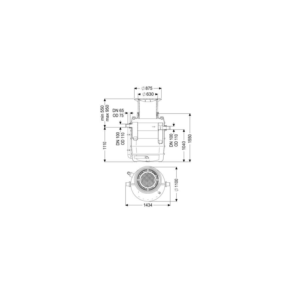 Separator tłuszczu EasyClean ground Direct 80B-DL (T:550-950mm), NS 4, do zabudowy w ziemi, właz kl. B, króciec lewy