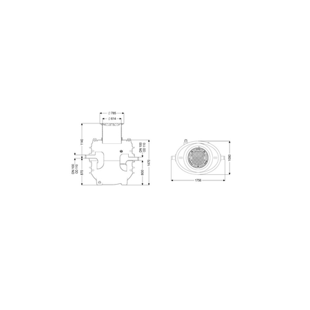 Odstęp między dnem rury dopływowej a dnem zbiornika: 870 mm