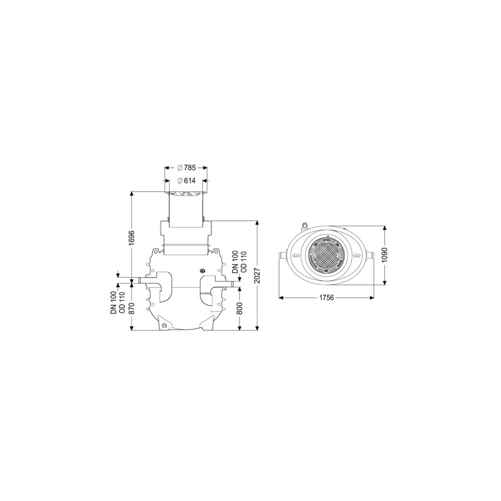 Szerokość w świetle włazu (LW): 600 mm