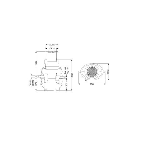 Odstęp między dnem rury dopływowej a dnem zbiornika: 870 mm