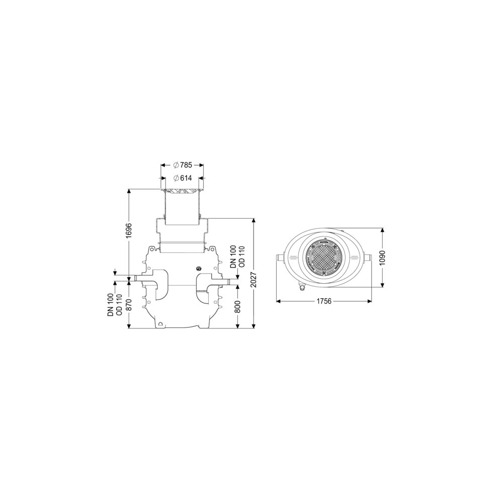 Odstęp między dnem rury dopływowej a dnem zbiornika: 870 mm