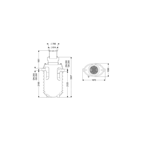 Odstęp między dnem rury dopływowej a dnem zbiornika: 2195 mm