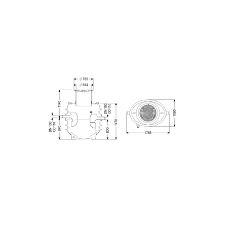 Odstęp między dnem rury dopływowej a dnem zbiornika: 870 mm