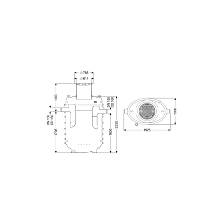 Odstęp między dnem rury odpływowej a dnem zbiornika: 1635 mm