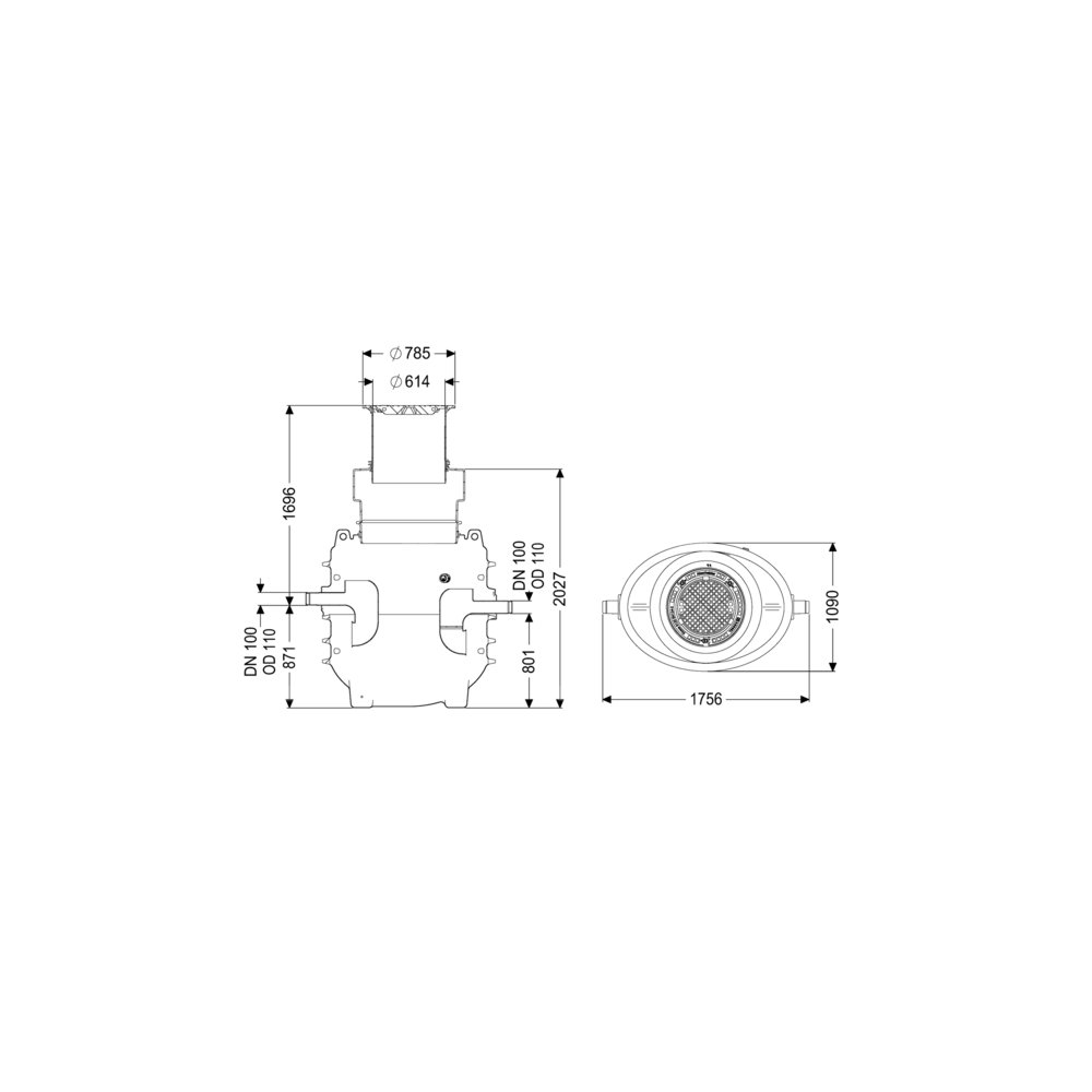 Odstęp między dnem rury dopływowej a dnem zbiornika: 870 mm