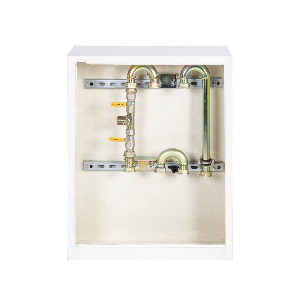 Punkt redukcyjno-pomiarowy na 2 gazomierze G4/G6, w pionie, w skrzynce z laminatu 670x870x250 - popielaty