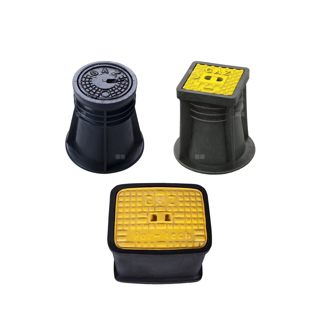 wskazuje miejsce góry trzpienia zasuwy znajdującej się pod ziemią. Po uchyleniu pokrywy skrzynki można kluczem do zasuw otworzyć lub zamknąć zasuwę. Korpus skrzynki wykonany jest z tworzywa PEHD czyli polietylenu o dużej gęstości. Skrzynka uliczna dzięki temu cechuje się odpornością na uszkodzenia chemiczne, biologiczne czy mechaniczne. Wieczko skrzynki ulicznej wykonana jest z żeliwa, czyli trwałego stopu stali z węglem, przez co ma dużą odporność na czynniki mechaniczne i obciążenie. Pokrywa jest antypoślizgowa, dlatego jest bezpieczna dla osób poruszających się po niej.