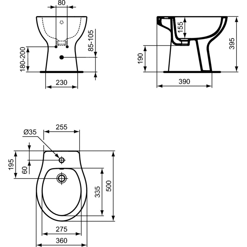 Bidet stojący Eurovit z wybtym jednym otworem na baterię.