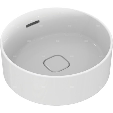 Umywalka Strada II bez otworu na baterię, ze szczelinowym przelewem i korkiem o białej pokrywie. W komplecie zestaw montażowy i szablon do wycinania. Opcjonalny montaż z korkiem typu Click-clack z metalową pokrywą T3630AA. W przypadku montażu z baterią z korkiem automatycznym zalecane jest zamówienie przedłużonego cięgna korka A960200AA.